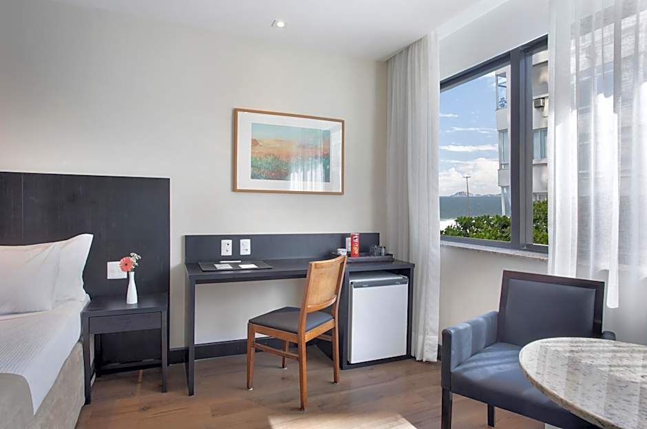 This room offers views to the beach, cable TV, WiFi, mini-bar, work desk, electronic safe and a bathroom.